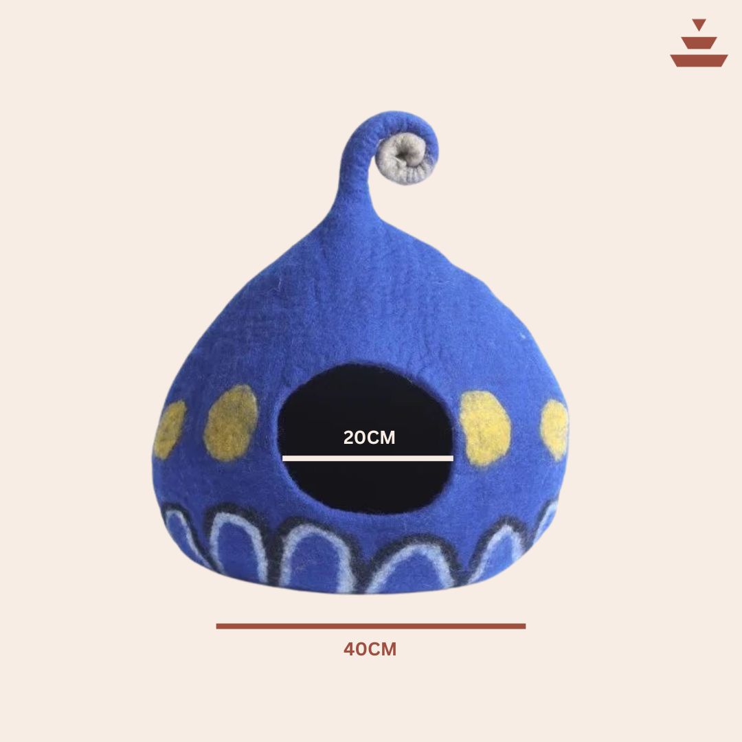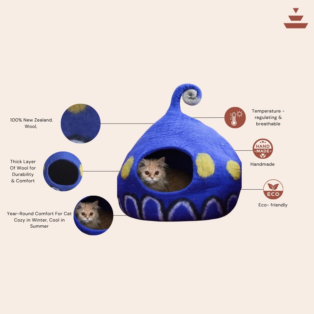 Our Handmade Felt Cat Cave offers the perfect blend of style, comfort, and function for your feline friend. Crafted from 100% natural wool, this cozy pet bed is ideal for cats and kittens of all sizes. Its insulating properties help regulate body temperature, keeping your cat warm in winter and cool in summer. The cave-like structure provides a sense of security, making it the perfect hideaway for rest and play. Each cat cave is hand-felted using eco-friendly processes, ensuring a safe, chemical-free space for your pet. Lightweight, durable, and easy to clean, it’s a stylish addition to any home. Treat your cat to comfort today!
