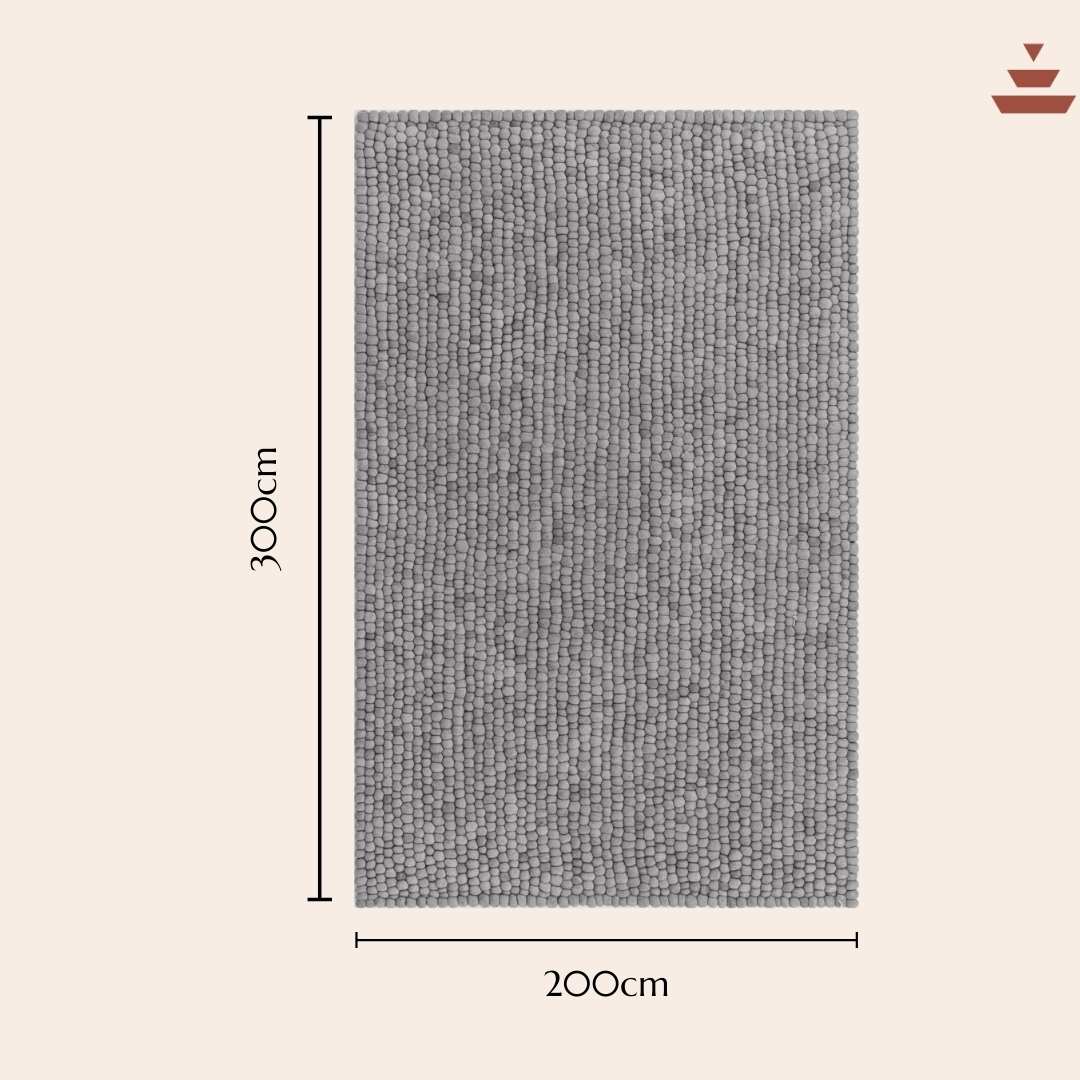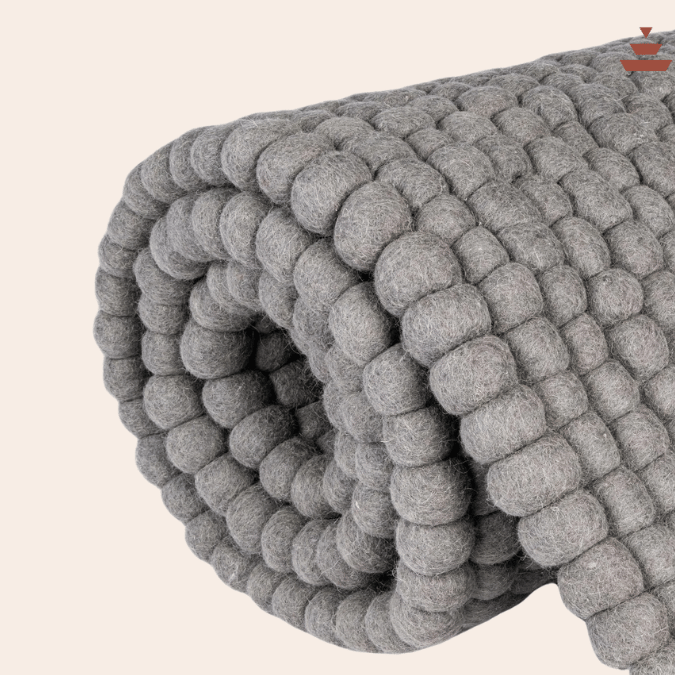 Gundri –Natural Grey Rectangular Ball Rug in 100% New Zealand Wool