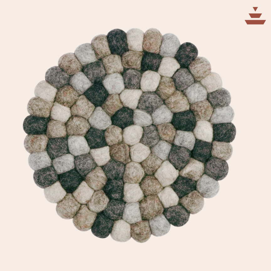 The Himalayan Aesthetics Eco Wool Felt Ball Trivet is handcrafted from eco-friendly wool felt balls, providing heat insulation and protecting surfaces from hot pots and pans. With a 20 cm diameter, this durable, hand-stitched trivet adds a cozy, decorative touch while preventing scratches and damage to countertops.